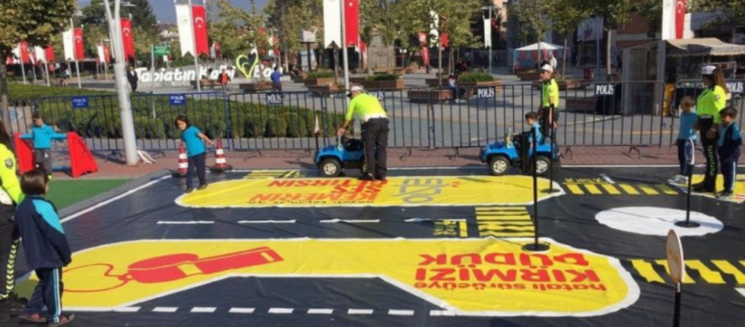 İlçemizde eğitim alan öğrencilerimiz uygulamalı ve gerçek anlamda bir trafik eğitimi alacakları Seyyar Trafik Eğitim Parkı 10 dakikada kolayca kurulum yapılabiliyor.