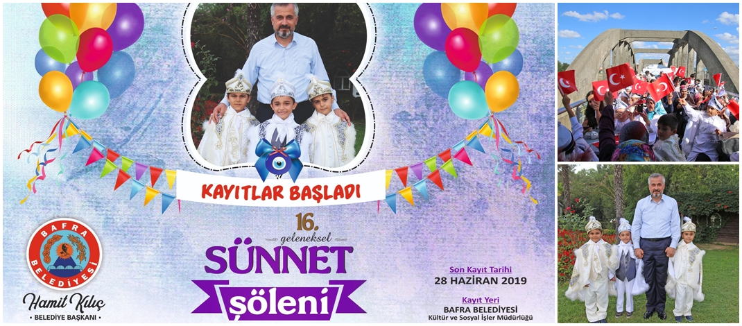 Bafra Belediye Başkanı Hamit Kılıç konu ile ilgili olarak şunları söyledi: “Dayanışma ve kaynaşmanın en güzel örneklerinden biri olan Sünnet Şölenlerimizin bu yıl 16.sını gerçekleştireceğiz. Sünnet Şöleni, kayıtlarımız başladı. Ailelerimiz, kayıtlarını Sosyal Yardım İşleri Müdürlüğümüze müracaat ederek gerçekleştirebilirler. İstenen belgelerin yanı sıra müdürlüğümüz yetkililerince ailelere verilecek formlar doldurularak kayıtlar gerçekleştirilecek.