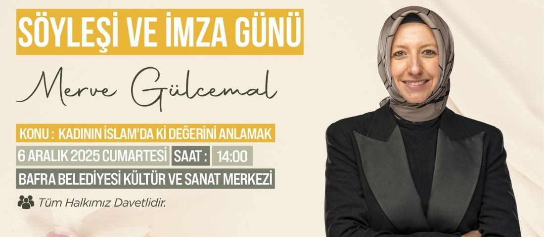 2025 Aile Yılı kapsamında kültürel faaliyetlerine aralıksız devam eden Bafra Belediyesi,6 Aralık Cumartesi günü Kültür Merkezi’nde Eğitimci- Yazar Merve Gülcemal’in katılımıyla “Kadının İslam’daki Yeri” konulu söyleşi ve imza günü düzenleyecek.