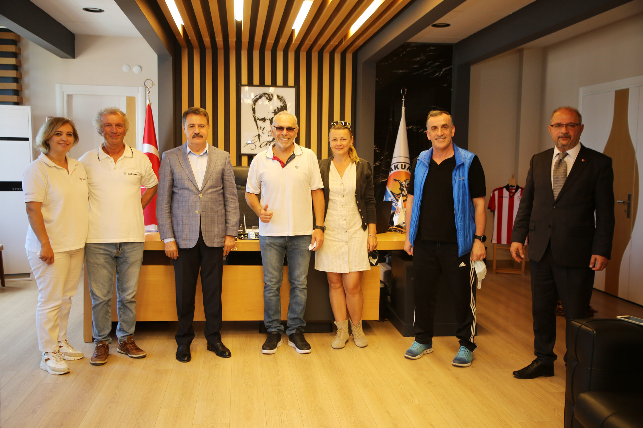 Sporcu Erhan Turan ve beraberindekiler , Atakum triatlonunu tamamlamasının ardından Atakum Belediye Başkanı Av. Cemil Deveci’yi makamında ziyaret ederek Atakum Belediyesi’ne desteklerinden ötürü teşekkür etti. Başkan Deveci, Turan’ın çok değerli ve anlamlı bir etkinlik gerçekleştirdiğini söyleyerek tebrik etti. Başkan Deveci, “Böylesi önemli bir spor etkinliğinin kentimizde başlamasından ve buradan bütün dünyaya yayılacak olmasından dolayı çok mutluyuz. Üstelik cumhuriyetimizin kuruluşunun 100. yılı nedeniyle olması bizleri daha çok mutlu ediyor ve heyecanlandırıyor. Dilerim burada dostluk ve barışla atılan bu ilk kulaç bütün dünyaya dostluğu, barışı ve huzuru götürür. Sporcumuza başarılar diliyorum” diye konuştu.