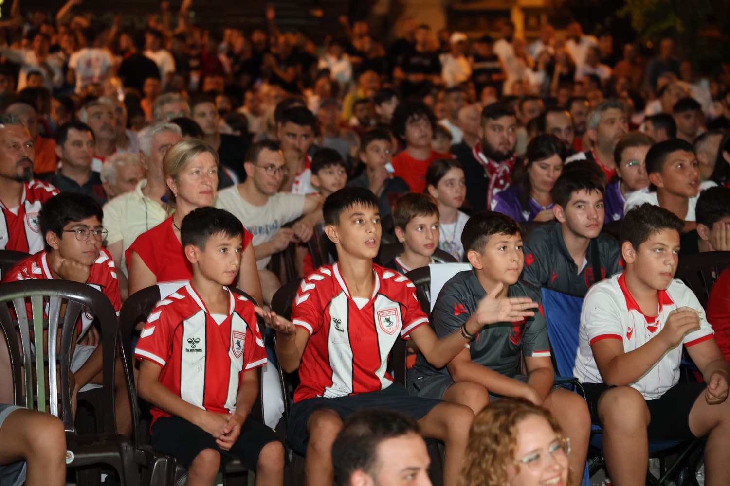 Samsunsporun Avrupa heyecanını paylaşmak isteyen 7’den 70’e her yaştan vatandaş, belediye hizmet binasının yanında bulunan alanda buluştu. Ellerinde Samsunspor bayraklarıyla kırmızı beyazlı ekibi destekleyen vatandaşlara, belediye ekipleri patlamış mısır ikram etti. Maçı izlemek için kendilerine ayrılan sandalyelere oturan taraftarlar, karşılaşma boyunca coşkuyla tezahürat yaptılar.
