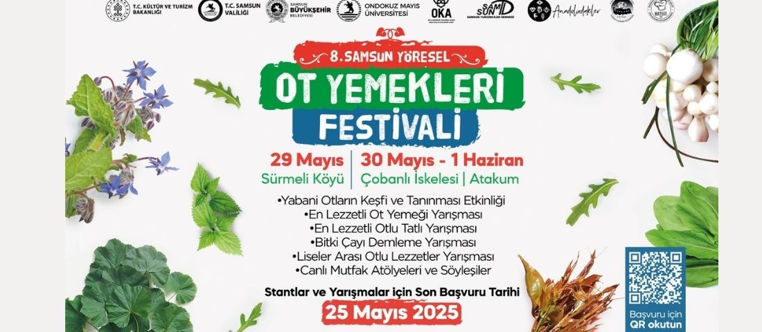 Zengin mutfak kültürüyle Karadeniz’in gastronomi başkentlerinden biri haline gelen Samsun’da düzenlenecek olan 8’inci Samsıın Yöresel Ot Yemekleri Festivali için geri sayım başladı. 29 Mayıs Bafra Sürmeli Köyü’nde 30-31 Mayıs ve 1 Haziran tarihlerinde Çobanlı İskelesi’nde gerçekleştirilecek festivalin son başvuru tarihi ise 25 Mayıs 2025.Samsun Büyükşehir Belediyesi tarafından Samsun’un doğal zenginliğinin bir göstergesi olan bitki çeşitliliğini, yabani yenilebilir otlarını ve bu otlarla yapılan yöresel yemeklerin tanıtımının yapılması amacıyla 8’inci Samsun Yöresel Ot Yemekleri Festivali düzenleniyor.