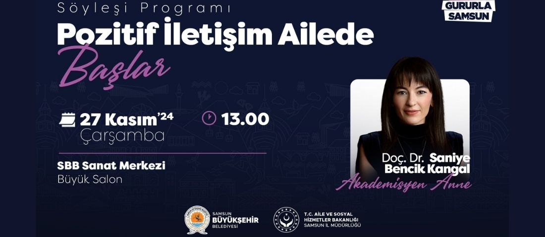 Samsun Büyükşehir Belediyesi kültürel faaliyetlere verdiği önemle dikkat çekmeye devam ediyor. Bu kapsamda Büyükşehir Belediyesi ilgili kurumların destekleriyle bir konferans programı gerçekleştirecek. 27 Kasım Çarşamba günü (yarın) saat 13.00’te, akademisyen ve aile içi iletişim konusunda uzman olan “Akademisyen Anne” Doç. Dr. Saniye Bencik Kangal “Pozitif İletişim Ailede Başlar” başlıklı semineri ile Samsun Büyükşehir Belediyesi (SBB) Sanat Merkezi Büyük Salon’da Samsunlu vatandaşlarla bir araya gelecek. Seminerde aile içindeki iletişimi güçlendirme, sağlıklı ilişkiler kurma ve toplumsal bağları iyileştirme konularında katılımcılara önemli bilgiler sunulacak.