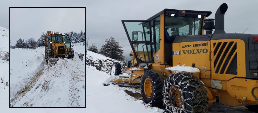 Karla mücadele edecek ekipler, tüm ekipman ve donanımlarıyla, Alaçam ilçesinin yüksek mahallelerinde 7 gün 24 saat görev yapmakta ayrıca, gelen bilgiler değerlendirilerek ekipler tarafından derhal müdahale edilmektedir.