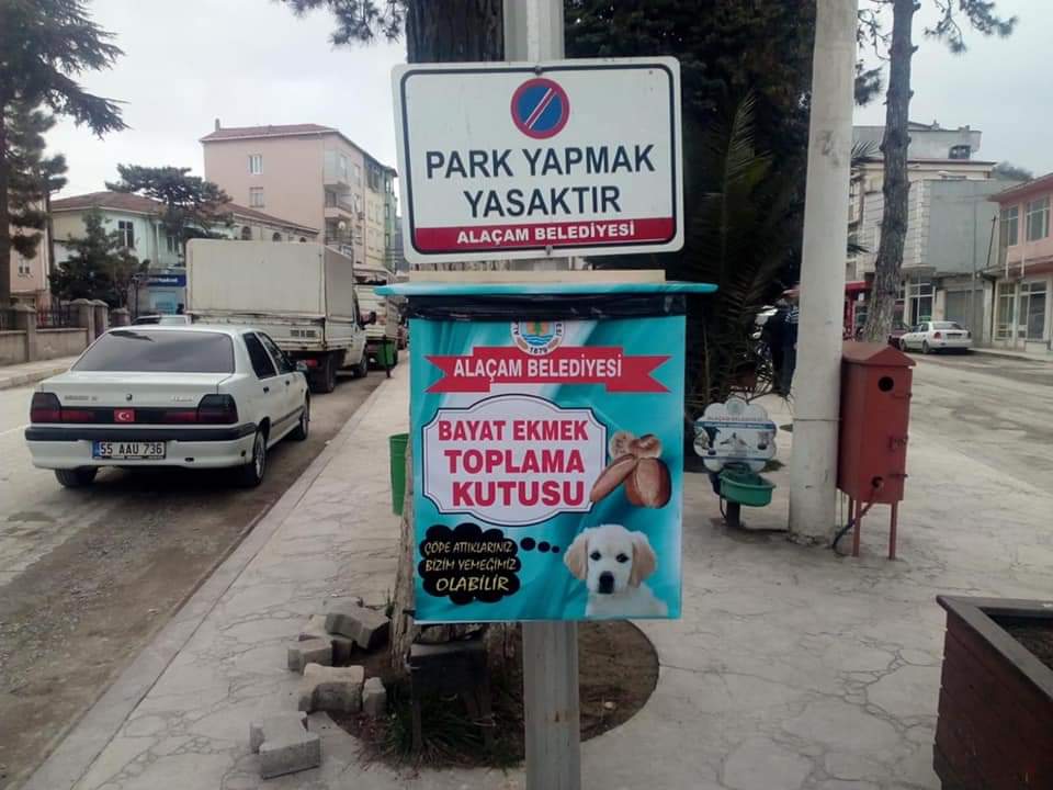 Alaçam Belediyesi, sokak hayvanlarının besin ihtiyacını karşılamak ve ekmek israfını önlemek amacıyla İlçenin değişik noktalarına bayat ekmek toplama kutuları yerleştirdi.