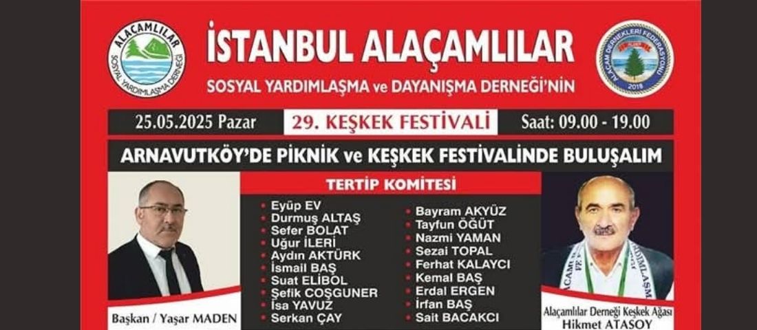 Arnavut köyde ,25 Mayıs 2025 pazar günü yapılacak olan 29.keşkek şölenine tüm Alaçamlı hemşehrilerle birlikte, Samsunlu hemşehriler de davetlidir.