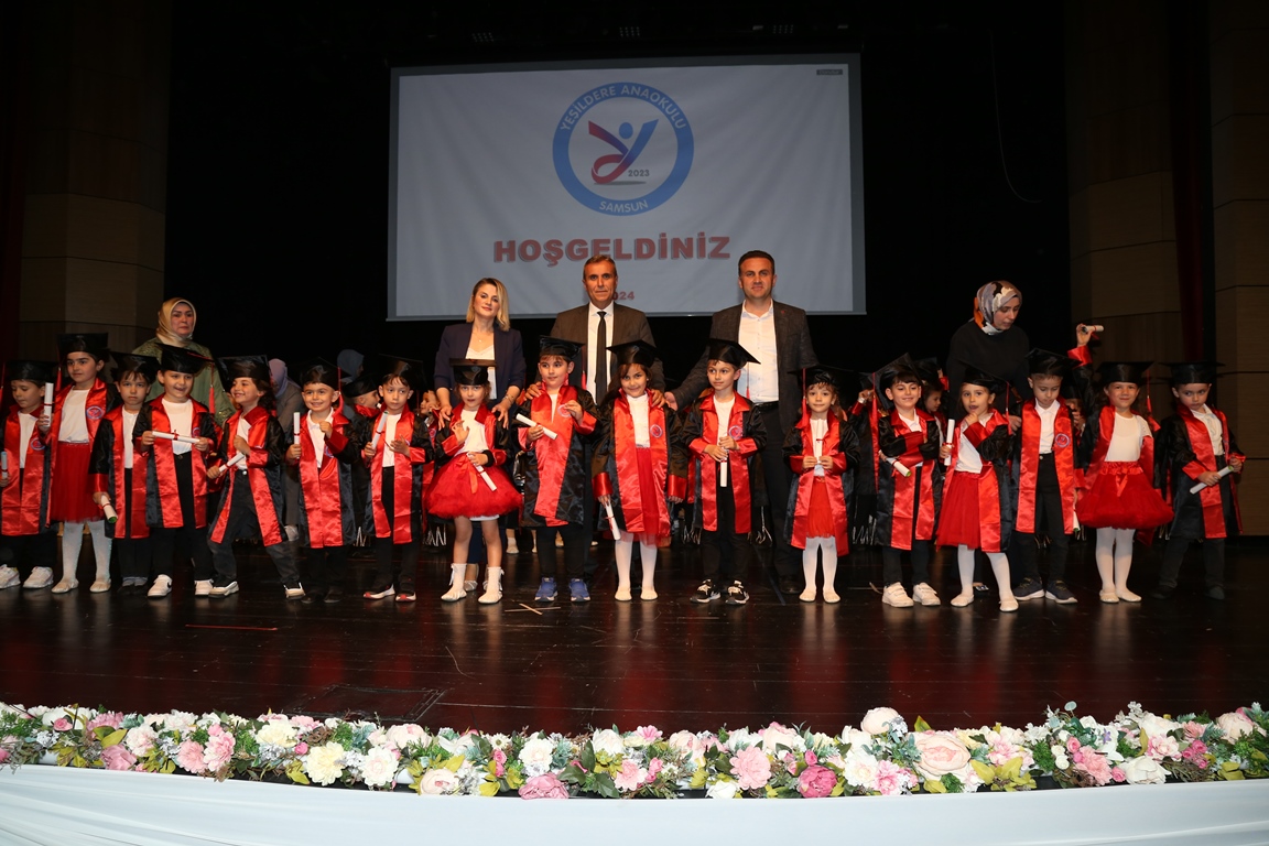 Atakum ilçesi Yeşildere Anaokulu 2023 – 2024 eğitim öğretim yılı mezuniyet törenini Büyükşehir Belediyesi Sanat Merkezinde başlayan muhteşem bir organizasyonla kutladılar. Okul Müdürü Dilek Genç,“Geleceğimizin teminatı olan sevgili öğrencilerimizi buradan uğurlamanın sevicini yaşıyoruz.” dedi.