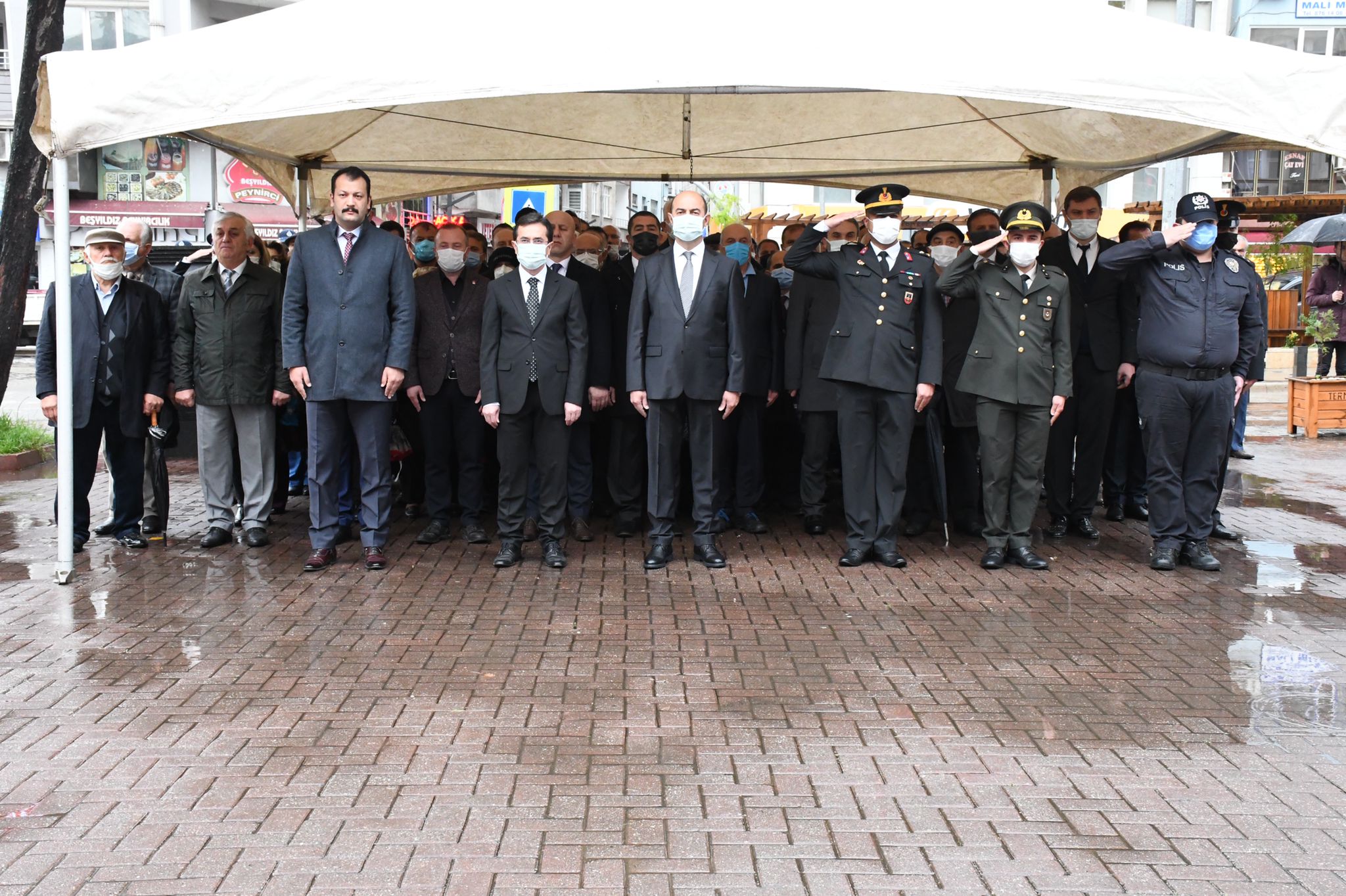 10 Kasım Atatürk’ü anma programı, çelenklerin anıta sunulması, 2 dakikalık saygı duruşu, sirenlerin çalması ve İstiklal Marşının okunması ile başladı.
