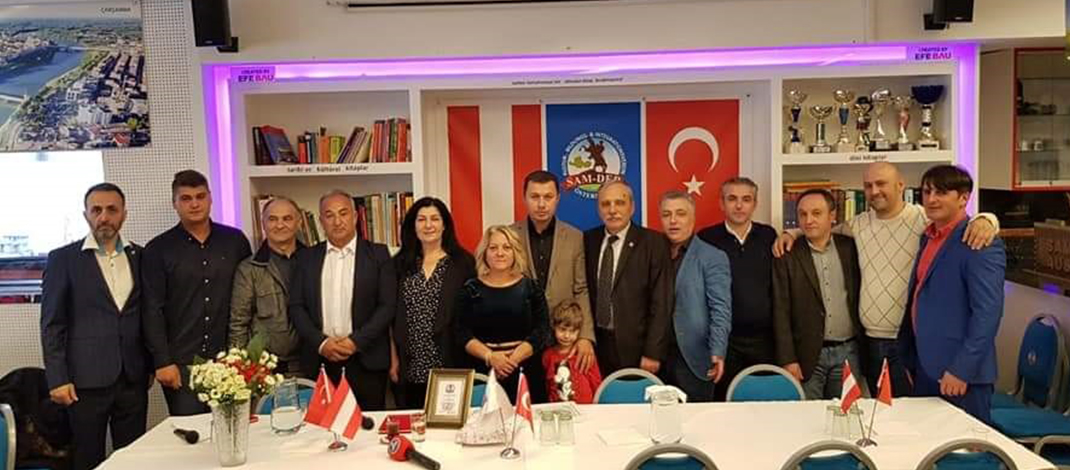 Avusturya Samsunlular Derneği kongresini yaparak bayrağı İrfan Korkmaz ve yönetmene teslim etti.