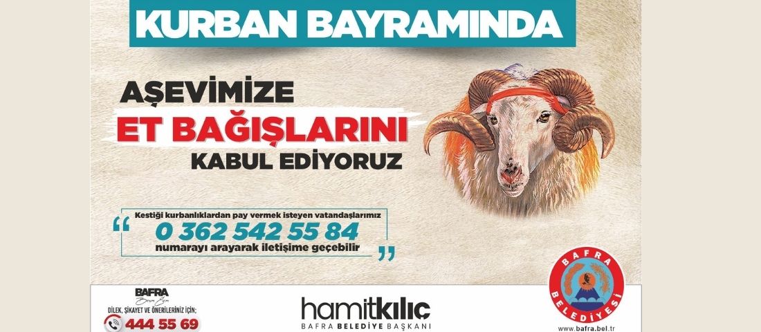 Kurban bağışlarının toplanmasına ilişkin çalışmalar hakkında bilgi veren Bafra Belediye Başkanı Hamit Kılıç, “Mübarek Kurban Bayramı boyunca kardeş elini ihtiyaç sahibi ailelerimize uzatmak isteyen tüm vatandaşlarımızın kurban payı bağışlarını Aşevimiz üzerinden bu yıl da kabul ediyoruz. Bağışlanan kurban etleri aşevimizde hazırlanan yemeklerde kullanılmasının yanında, tespit edilen ihtiyaç sahibi ailelilerimize ulaştıracağız” ifadelerini kullandı.