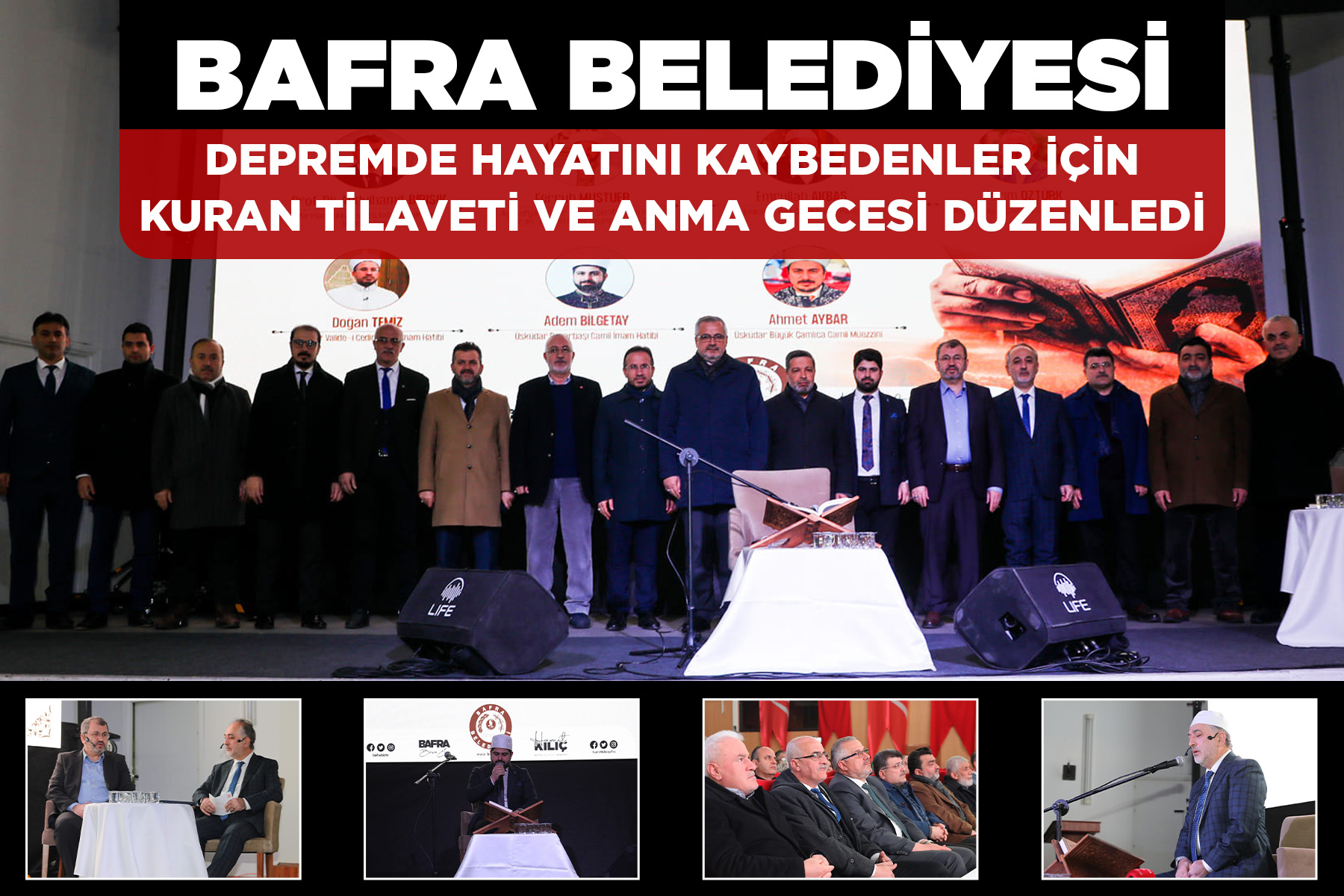 Bafra Belediyesi’nin ev sahipliğinde Bafra Kültür Merkezi’nde depremde hayatını kaybeden vatandaşlarımız için “Kuran Tilaveti ve Dua Gecesi” yoğun bir katılımla gerçekleştirildi.