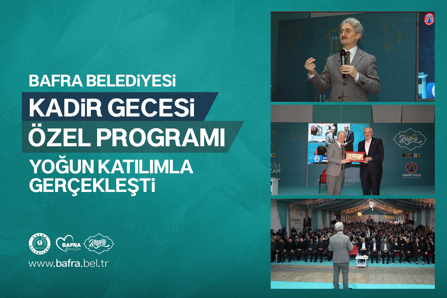 Bafra Belediyesi’nin ev sahipliğinde, Kur’an-ı Kerim’in indirilmeye başlandığı ve içerisinde sayısız hikmet barındıran mübarek Kadir Gecesi’ne özel anlamlı bir program düzenlendi.