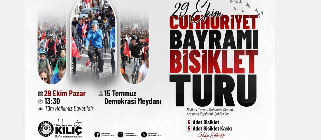 Bisiklet tutkunları ile Cumhuriyet’in 100. Yılında “Cumhuriyet” için pedal çevirecek olan Belediye Başkanı Hamit Kılıç; “Bafra’mızda büyük bir coşku ile Cumhuriyet’imizin 100. Yılını kutlayacağız. Yine bütün bisiklet tutkunlarıyla bir araya gelecek, hep birlikte pedal çevireceğiz. Her yıl ücretsiz olarak gerçekleştirdiğimiz bisiklet turumuza genç yaşlı demeden bütün hemşehrilerimizi davet ediyorum” dedi.