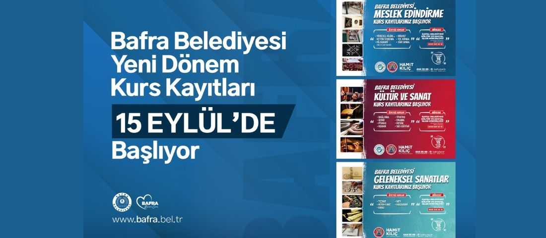 Bafra Belediyesi tarafından çocukların, gençlerin ve yetişkinlerin yeteneklerini keşfetmeleri, yeni hobiler edinmeleri ve kendilerini geliştirmeleri amacıyla hayata geçirilen “kültür ve sanat, sanat ve meslek edindirme ile geleneksel sanatlar” kurslarının yeni dönem kayıtları başlıyor.