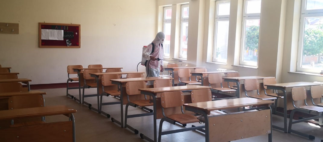 Yeni tip koronavirüs (Kovid-19) tedbirleri kapsamında uygulanan dezenfeksiyon çalışmaları sınavın gerçekleşeceği 25 okulda yapıldı.