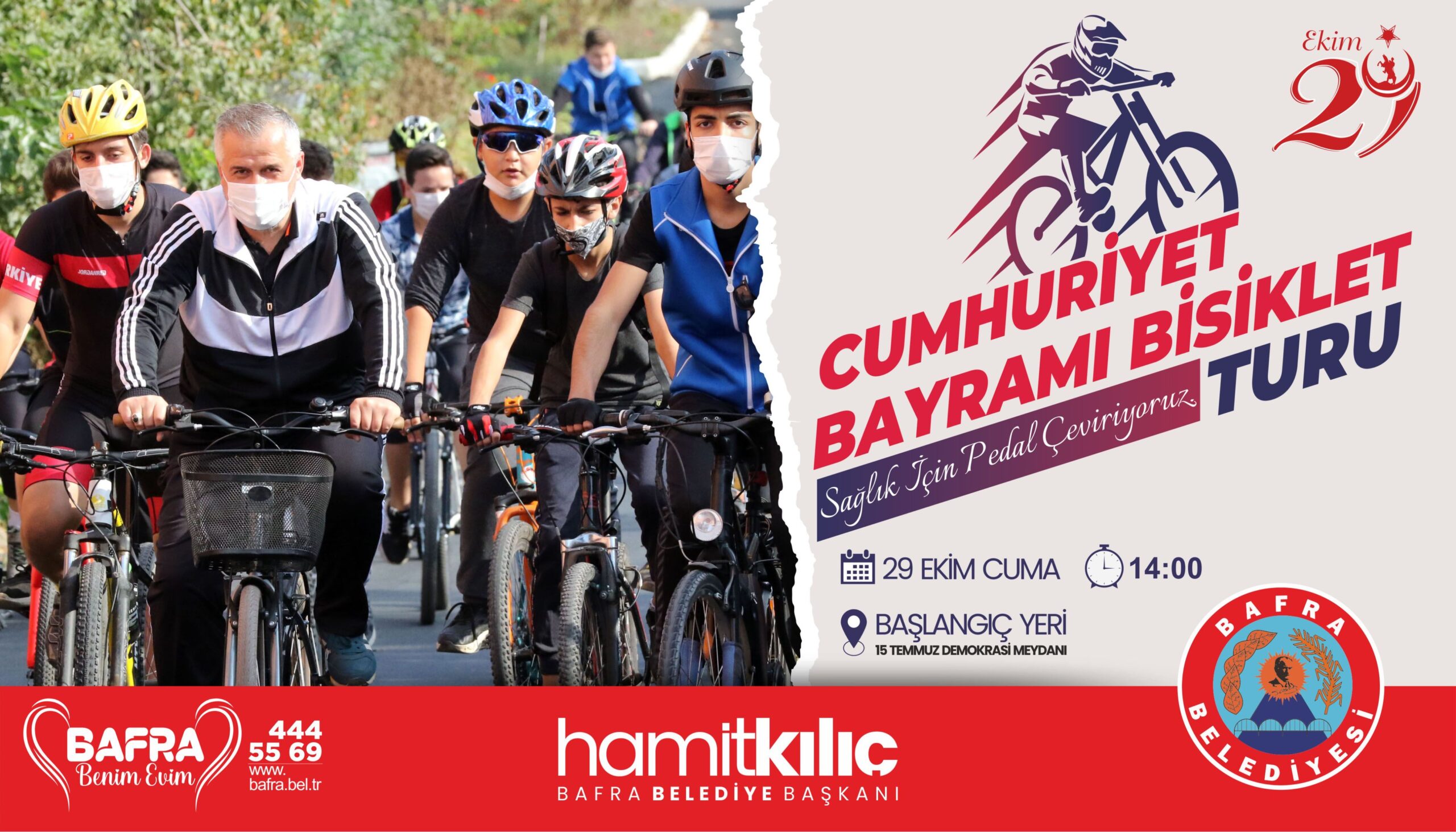 “Bisikletini Al Gel, Sağlık için Pedalla” sloganıyla düzenlenecek Bafra Belediyesi Cumhuriyet Bisiklet Turu, 29 Ekim Cuma günü saat 14.00’de 15 Temmuz Demokrasi Meydanı’ndan başlayacak ve Kızılırmak Sedde Parkı’nda sona erecek.