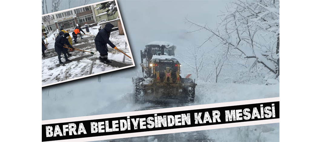 Bafra Belediyesi ekipleri kar yağışının meydana getirdiği olumsuzlukları ortadan kaldırmak ve ilçedeki günlük yaşamın aksamaması için çalışmalarına ara vermeksizin devam ediyor.