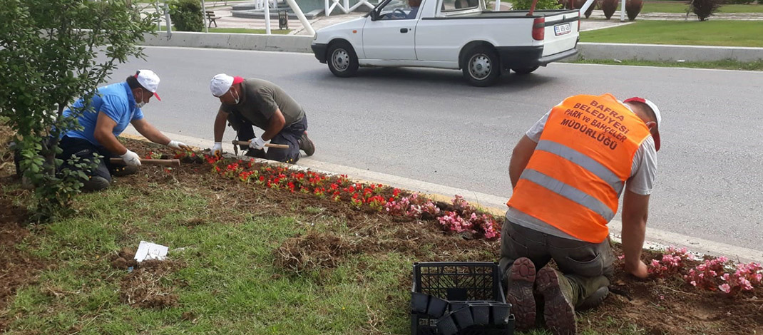 Park ve Bahçeler Müdürlüğü ekiplerince gerçekleştirilen çalışmalarda; İlçe girişi,15 Temmuz Demokrasi Meydanı, Cumhuriyet Meydanı, parklar, kavşak ve refüjlerde rengârenk çiçekler dikiliyor.