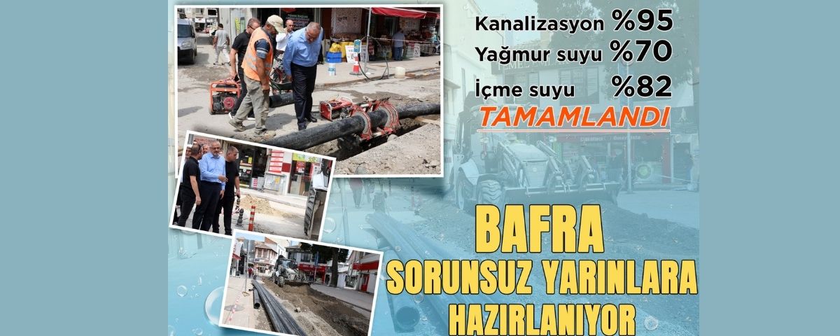 Eş zamanlı yürütülen ve her biri ilçe için hayati önem ve değer taşıyan çalışmalarda günümüz itibariyle 94.116 m. içme suyu hattı döşendi. Yatırım kapsamında Bafra aynı zamanda asbest boru sorunundan da kurtuluyor. 115 km. asbest boru hattı değişiyor.