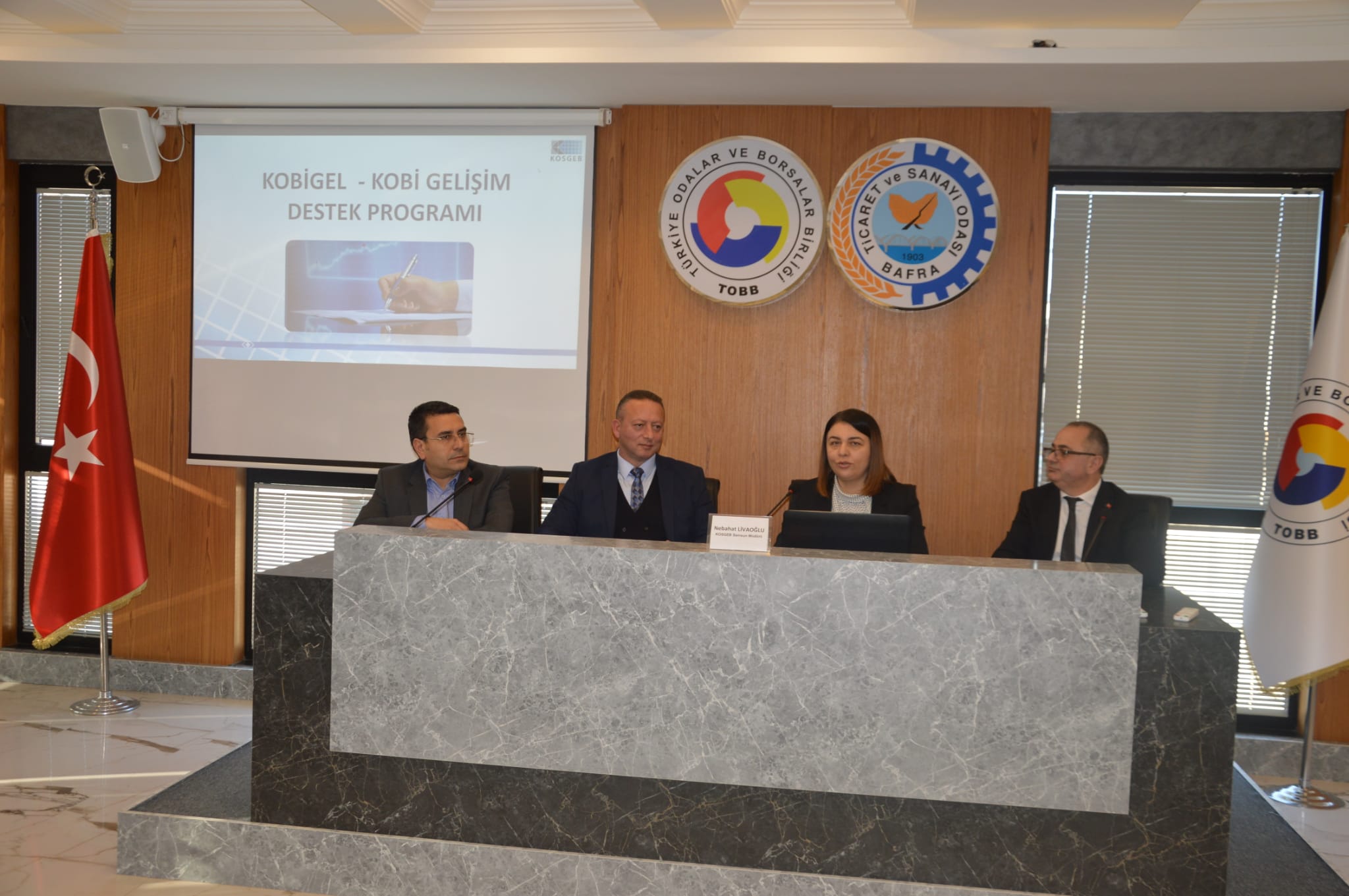 KOSGEB ‘’Kobigel – KOBİ Gelişim Destek Programı 2022 Yılı Proje Teklif Çağrıları’’ Bilgilendirme semineri Samsun KOSGEB İl Müdürü Nebahat Livaoğlu tarafından Bafra Ticaret ve Sanayi Odasında gerçekleşti.