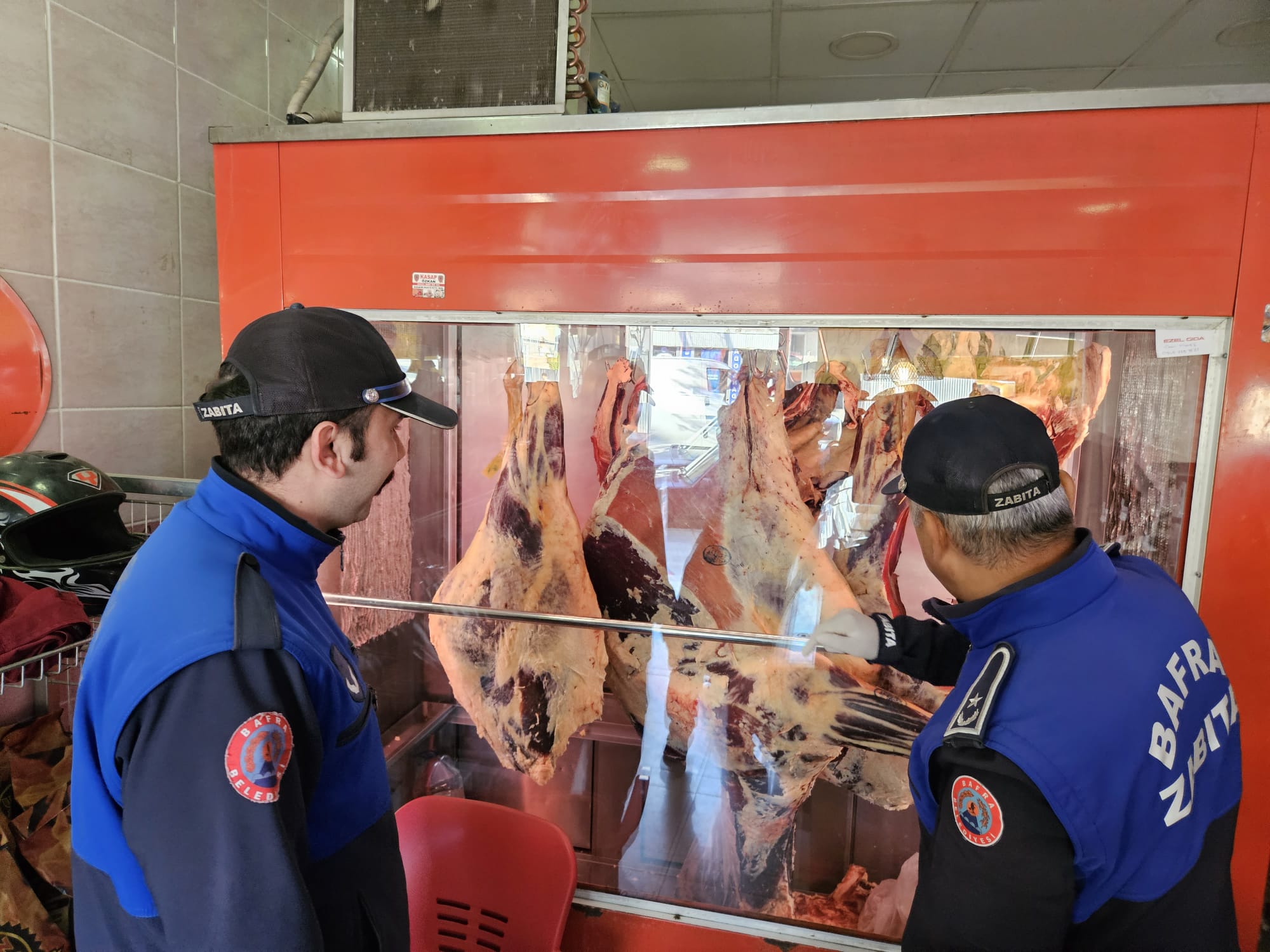 Bafra Belediyesi Zabıta Müdürlü ekipleri, 78 zincir market ve yerel marketlerde gerçekleştirdiği gramaj, etiket ve irsaliye denetimlerinin ardından ilçede faaliyette bulunan kasaplar ile et ürünleri satan işyerlerini denetledi.