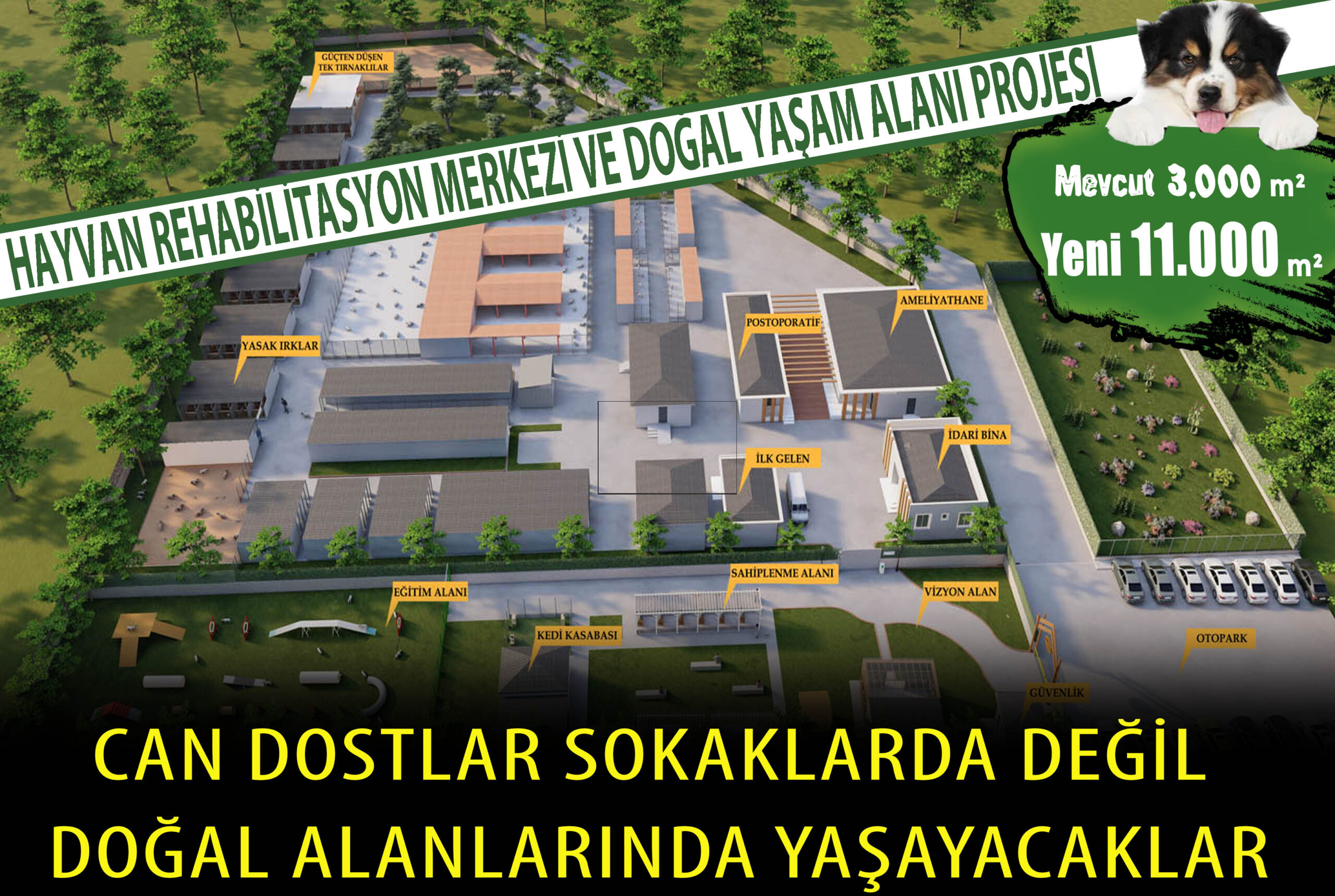 Hayvan Rehabilitasyon Merkezi ve Doğal Yaşam Alanı projesi sadece köpek ve kedilere değil terk edilmiş tüm hayvanların bakımı ve tedavi işlemleri gerçekleşecek.