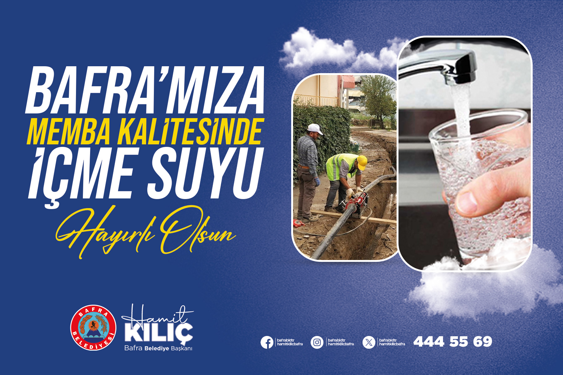 19 Mayıs Dağ Barajı’ndan temin edilen Nebiyan suyu arıtılarak 26 Kasım 2023 Pazar gününden itibaren altyapı çalışmaları tamamlanan içme suyu hatlarından mahallelere verilmeye başlandı. Vatandaşlar dört gözle beklediği kaliteli, temiz ve sağlıklı içme suyuna kavuştu.