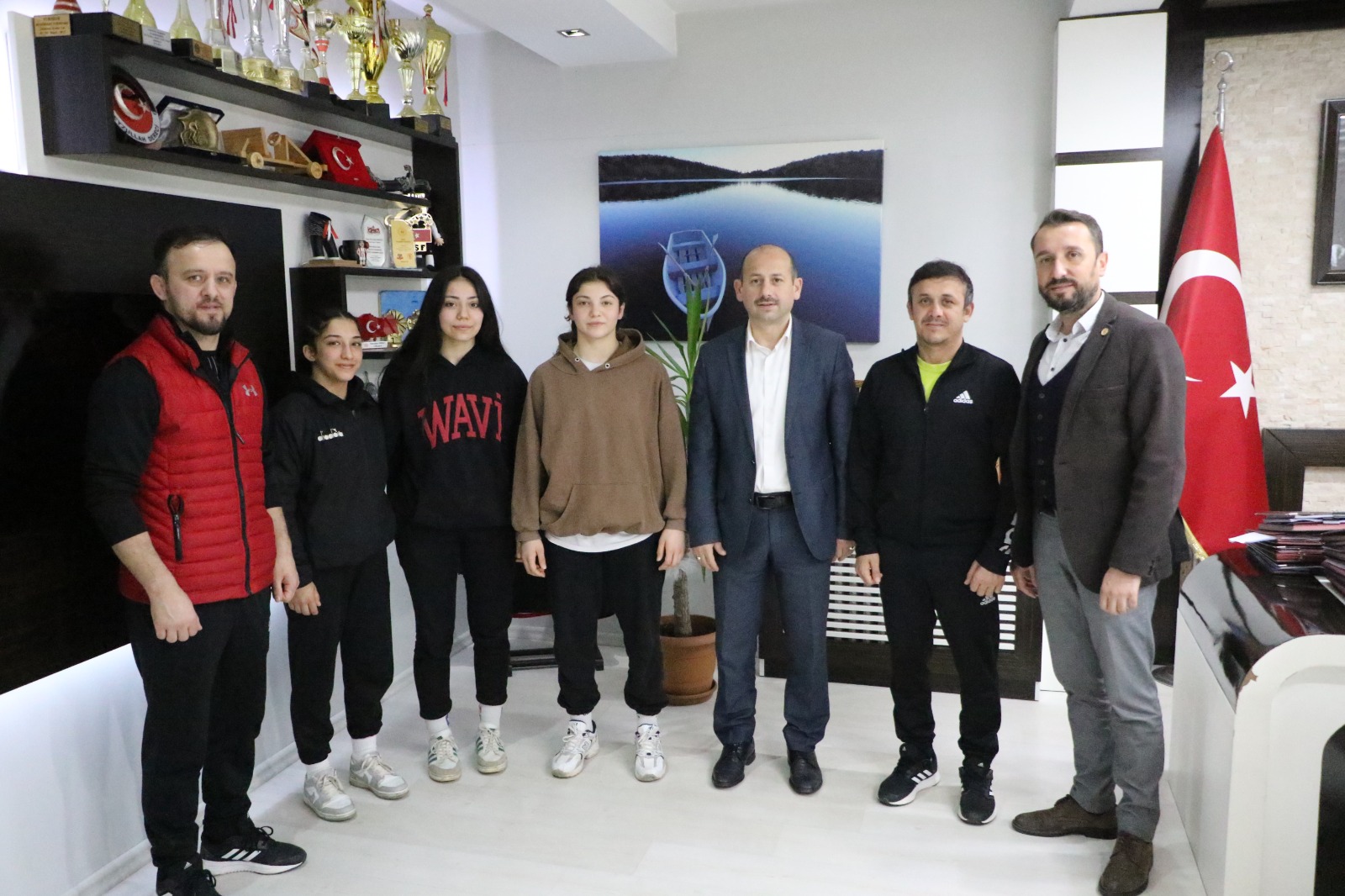 Samsun’un başarılı güreşçileri Çilem Çağul, Elif Gündoğdu, Sudenaz Zorlu ve Meryem Akyel, antrenörler Ali Çağlar ve Bekir Çağlar’la birlikte Samsun Gençlik ve Spor İl Müdürü Feyzullah Dereci’yi makamında ziyaret ettiler.
