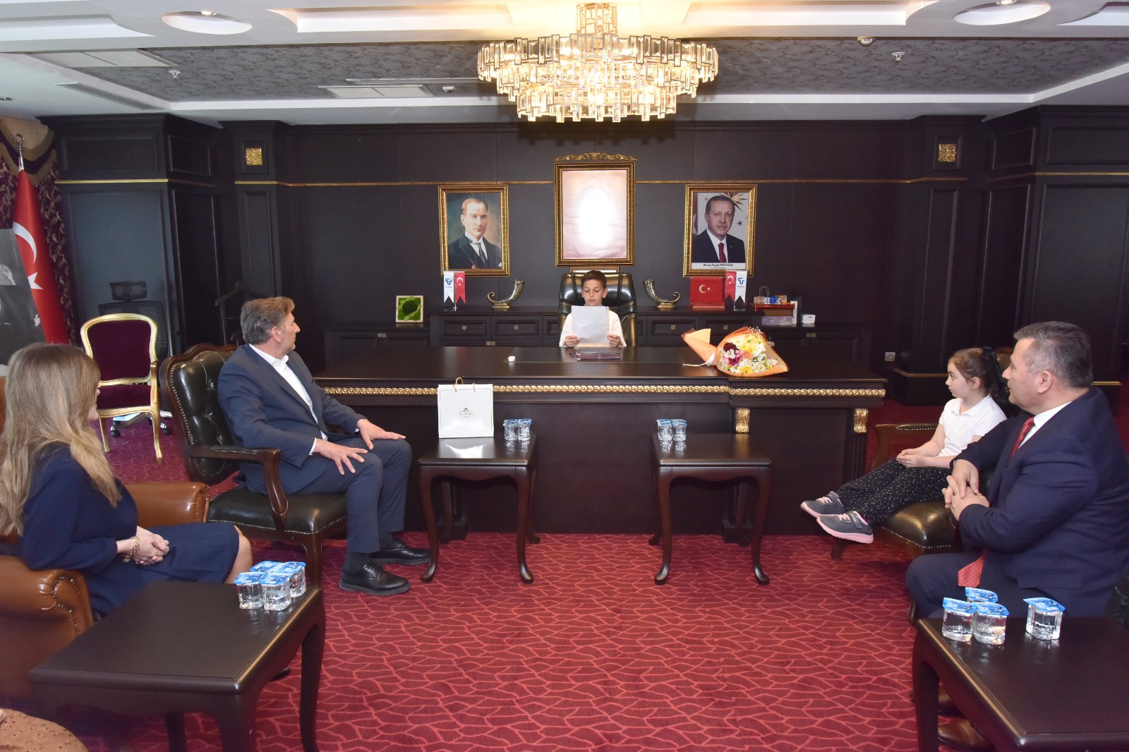 Başkan Candal ziyarette koltuğunu öğrenciler Zeynep, Kadir ve Elisa’ya teslim etti. Makam koltuğunu çocuklara teslim eden Başkan Candal yeni başkanlara bir talimatı olup olmadığını sordu. Temsili olarak başkanlık makamına oturan öğrenciler Tekkeköy’de çocuklar için gereken çalışmaların zaten yapıldığını belirterek öğrenim gördükleri okul için birkaç istekte bulundu.