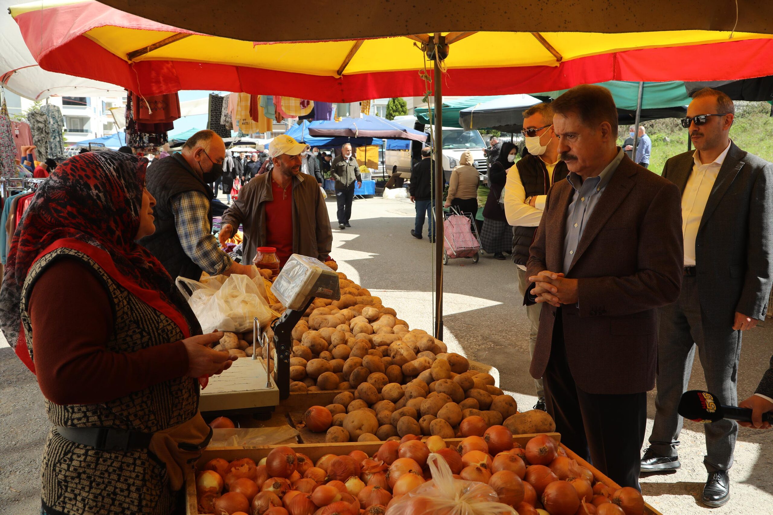 Satanın da alanın da pahalı bulduğu bir pazar olduğunu belirten Atakum Belediye Başkanı Av. Cemil Deveci, “Türkiye’de ilk kez böyle bir şey oluyor. Ürünlerin girdilerinin içinde akaryakıt, işçi emeği , gübre var. Bunlar hep dışarıdan ithal ediliyor. İthal olunca Türk parasının değeri düştü, dövizle ithal ediliyor. Doğal olarak Türk parasıyla değerlendirince fiyatlar yükseliyor. Biz kendi ürettiğimiz değerlerin bir kısmını özelleştirdik. Kendi elimizden çıkardık, sübvanse de edemiyoruz yeteri kadar. Tarım ülkesi olmamıza rağmen hem alıcının hem de satıcının huzursuz ve şikayetçi olduğu bir dönem. Alıcının da satıcının da derdi hayat pahalılığı. Alıcı ‘Ucuz alamıyorum, nakliye ücretim pahalı. Arabanın parçası pahalı, ucuza mal edemiyorum. Pazarda üç gün içerisinde satamazsam çürüğe ayırmam lazım, aldığım sattığım malın yerine yenisini koyamıyorum, benim de çocuklarım var, mutfağımda ben de çorba kaynatacağım, mutlu değilim çünkü tüketici tezgahımdan ürün alırken cebindeki parayı kuruş kuruş sayarak alıyor, huzursuz oluyorum’ diyor. Yani herkesin mutlu olmadığı, huzursuz olduğu bir dönemden geçiyoruz ne yazık ki. El birliği ile buradan çıkmak lazım. Türkiye bu tip badireler atlattı ve çıktı. Her sözü olanın sözünü dinlemek lazım. ‘Ben bilirim’ dememek lazım. ‘Bu ülkeye ben de sevdalıyım, benim de katkım olsun ben de şöyle düşünüyorum’ diyenlerin görüşünü almak lazım. Kol kola girmek lazım.” ifadelerini kullandı.