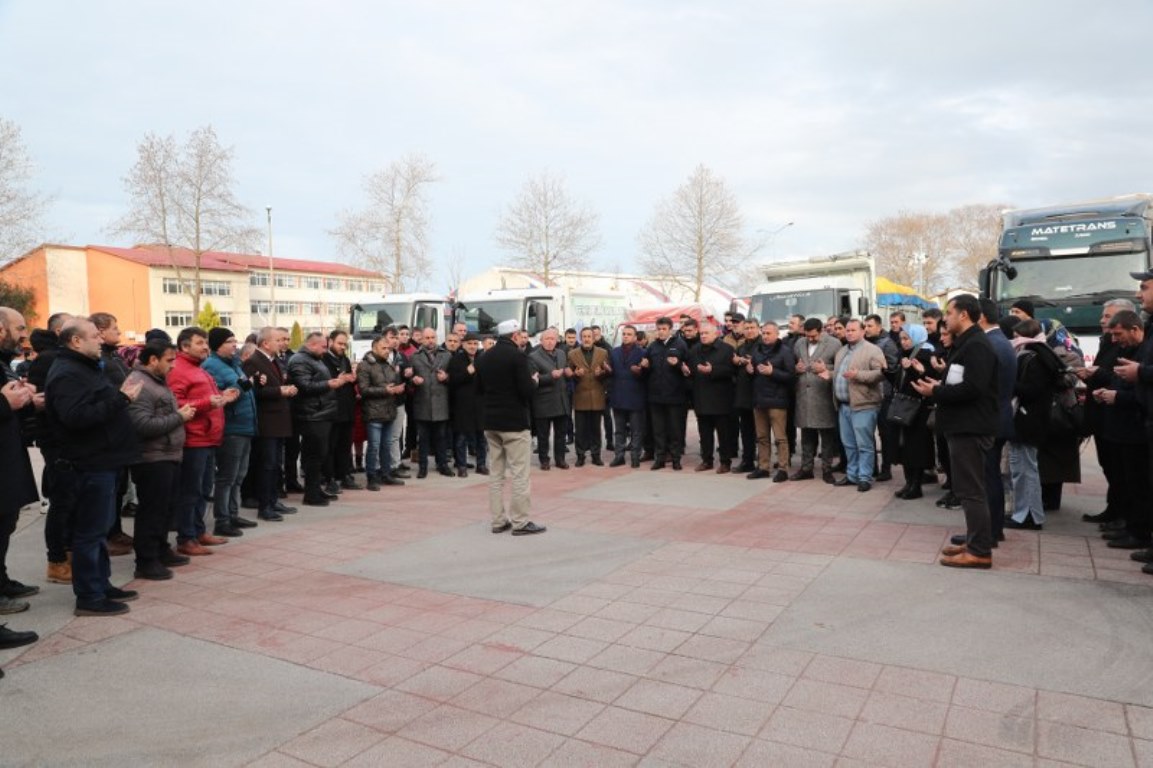 Birlik, beraberlik örneği göstererek kenetlenen Fatsalıların desteğiyle deprem bölgesi için toplanan yardımlar afet bölgesine kesintisiz bir şekilde ulaştırılıyor.Ayrıca15 Temmuz Demokrasi ve Özgürlük Meydanı’nda yapılan dua ve uğurlama töreninde, Fatsa Kaymakamı Avni Kula, Fatsa Belediye Başkanı İbrahim Etem Kibar, Belediye Meclis Üyeleri, Daire Müdürleri, görevli personellerin aileleri katıldı. Fatsa Müftülüğü Şube Müdürü Mehmet Sandıkçı’nın yaptığı dua ile 35’inci yardım aracı yakacak, yiyecek ve barınma malzemelerinin yanı sıra 1 konteyner ev 3 iş makinesi ve görevli personeller deprem bölgesine gönderildi.