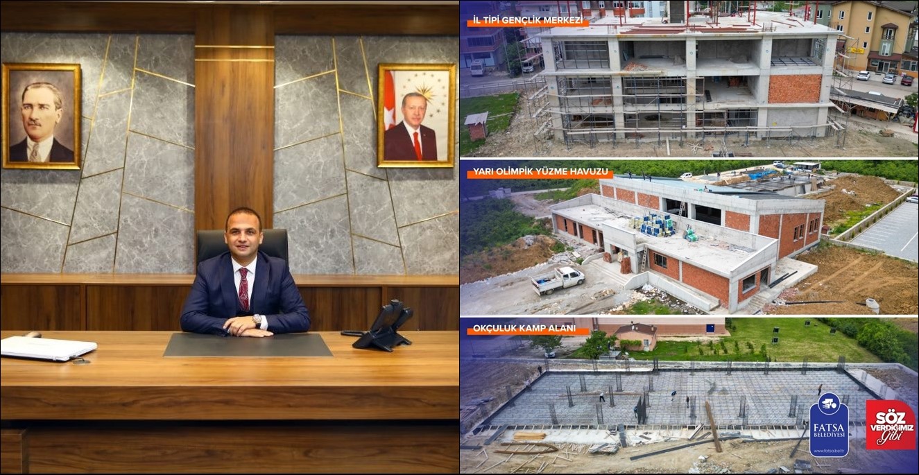 Fatsa Belediye Başkanı İbrahim Etem Kibar, “ Gençlik ve Spor yatırımları kapsamında ilçemizde yapımına başlanılan İl Tipi Gençlik Merkezi, Okçuluk Kamp Alanı ve Yarı Olimpik Yüzme Havuzu inşaatı hız kesmeden devam ediyor ”dedi.
