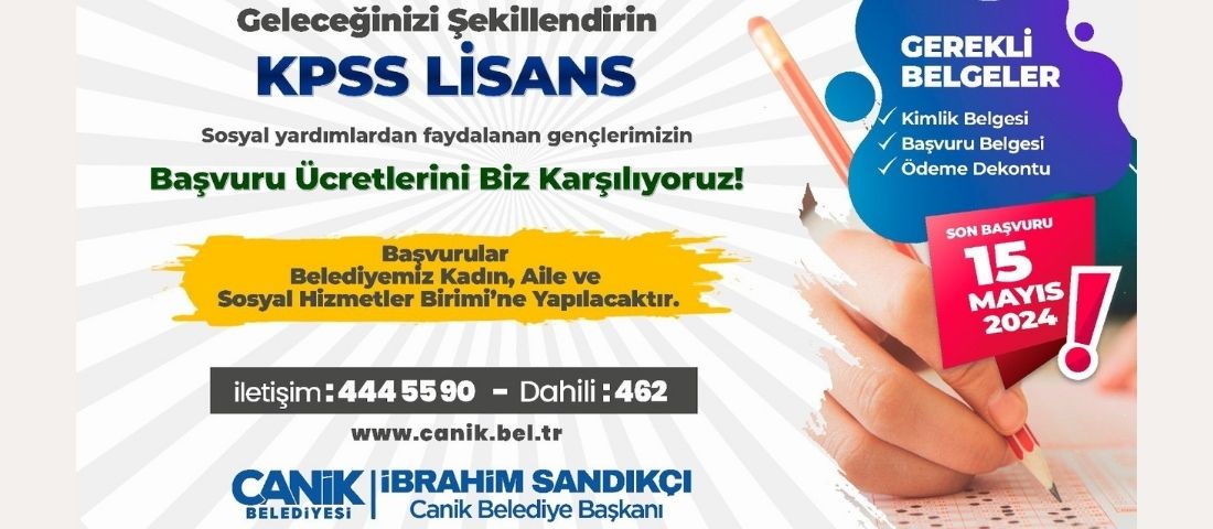 Canik Belediyesi 2024 KPSS Lisans sınav ücret desteğine, ilçede ikamet eden ve sosyal yardımlardan faydalanan adaylar başvuruda bulunabilecek. Adaylar başvurularını 15 Mayıs 2024 Çarşamba günü, saat 17.00’a kadar Türkiye Cumhuriyeti Kimlik Kartı, 2024 KPSS Lisans başvuru belgesi ve ödeme dekontu ile birlikte Canik Belediyesi Kadın, Aile ve Sosyal Hizmetler Müdürlüğü’ne şahsen gerçekleştirebilecek.