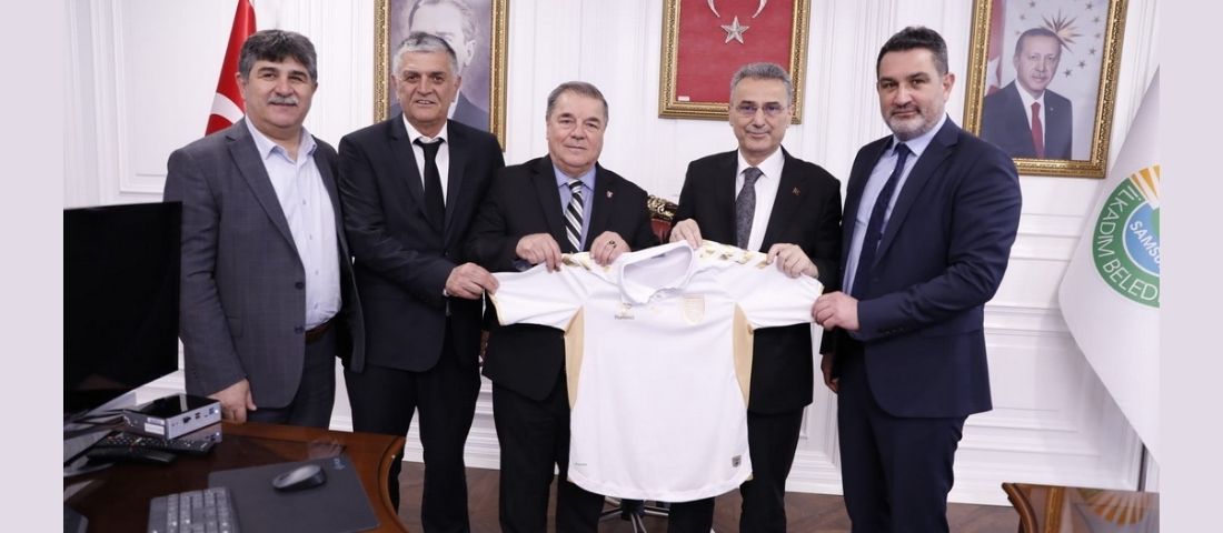 Samsunspor Başkan Vekili Veysel Bilen ve beraberindeki heyet, İlkadım Belediye Başkanı İhsan Kurnaz’ı ziyaret etti. Samsunspor Heyeti, Başkan İhsan Kurnaz’a adının yazılı olduğu 55 sırt numaralı forma hediye etti.
