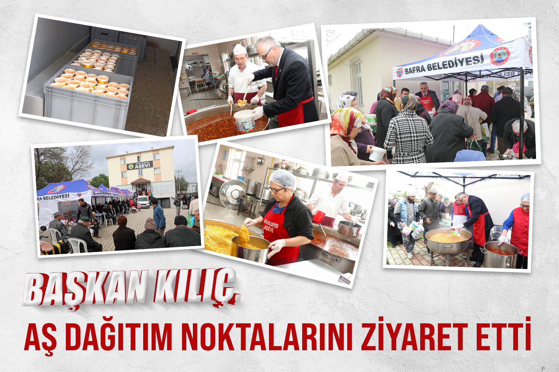 Bafra Belediyesi Sosyal Yardım İşleri Müdürlüğü bünyesinde faaliyet gösteren Belediye Aşevi’nde gerek aş dağıtımı yaparak gerekse de vatandaşlarla iftar ederek vakit geçiren Bafra Belediye Başkanı Hamit Kılıç, Belediye Aşevi’ni ve belediye tarafından bölgeye hizmet etmesi için açılan Kavakpınar Mahallesi Muhtarlığı önündeki aş dağıtım noktasını ziyaret etti.