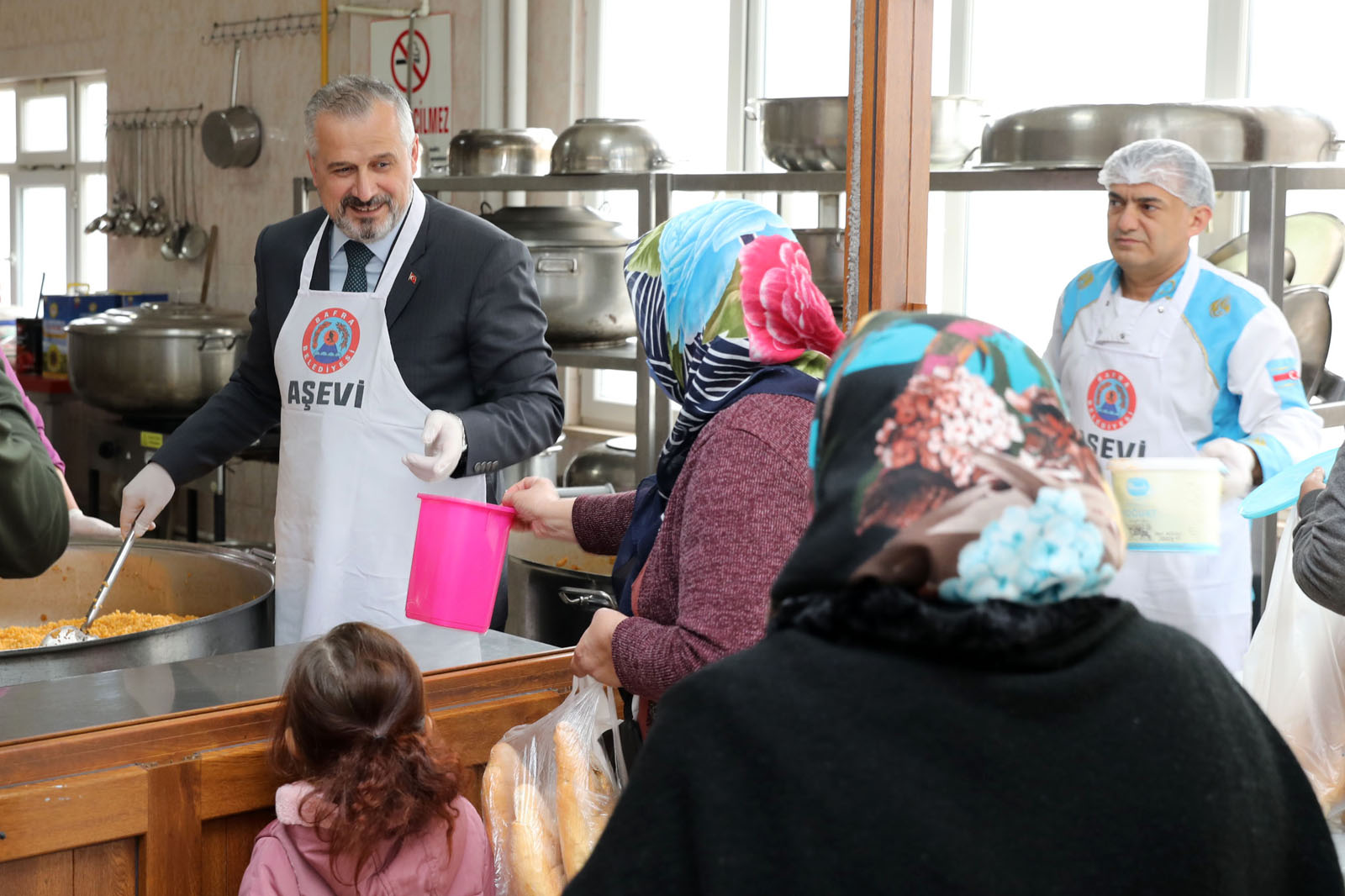 Aş dağıtımı sonrası açıklamalarda bulunan Başkan Kılıç şunları söyledi: “Paylaşma ve yardımlaşma duygularının en yüksek seviyede olduğu mübarek Ramazan ayını milletçe hep birlikte en güzel şekilde yaşamaya çalışıyoruz. Belediye olarak biz de bu anlamda iki ayrı noktamızda ihtiyaç sahiplerimize 1000 kişilik aş dağıtımı yapıyoruz. Dağıtımda dört çeşit yemek, içecek ve yanında ekmek veriliyor. Geçtiğimiz günlerde Aşevimizde halkımızla birlikte iftar yapmıştık. Şimdi ise yardıma muhtaç ailelerin sofralarına sıcak yemek götürmelerini sağladığımız Aşevimizde hazırlanan aşlarımızı vatandaşlarımıza dağıttık.