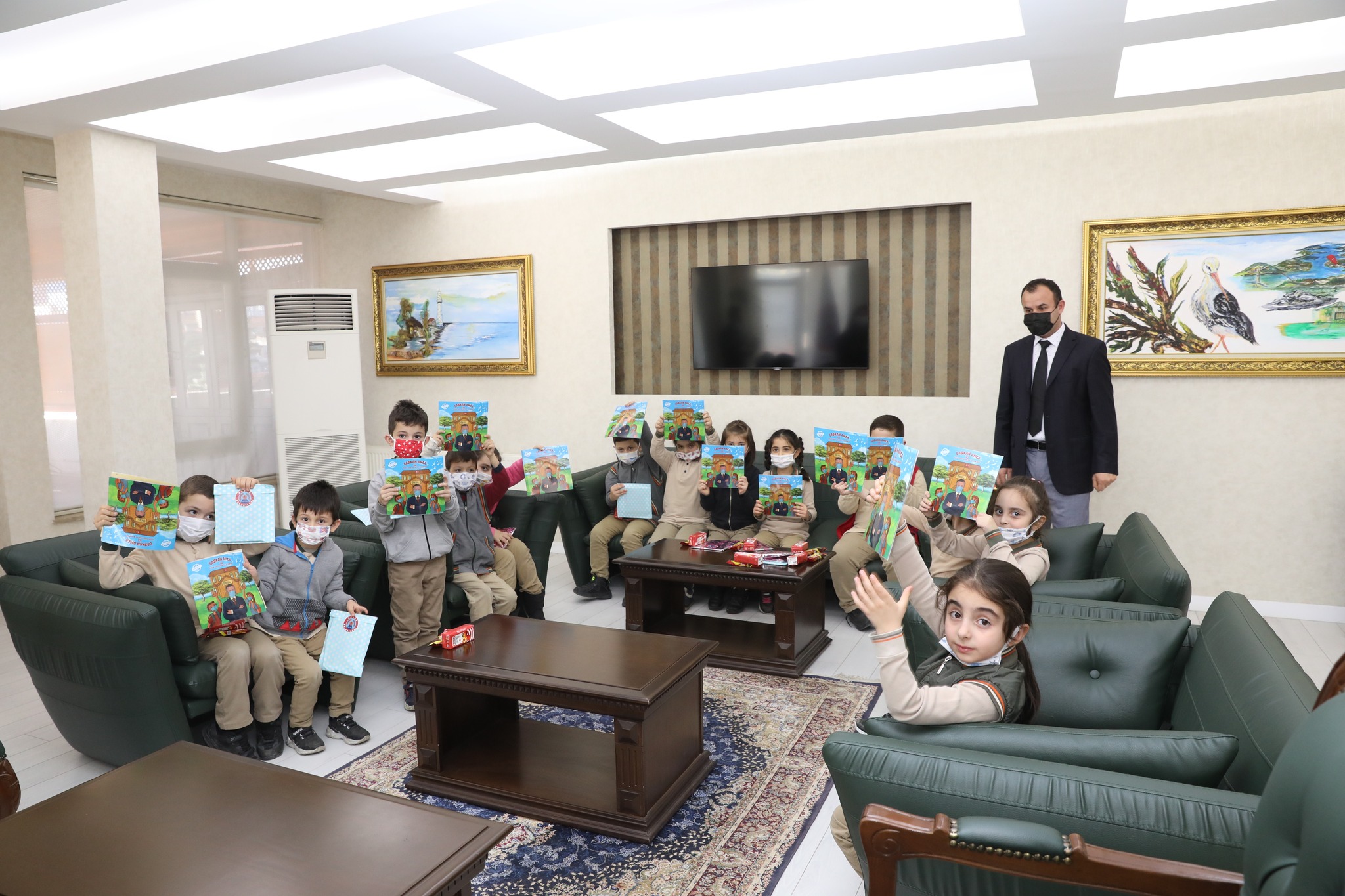 Başkanlık makamında gerçeklesen ziyarete; Okul Müdürü Süleyman Kaplan,Sınıf öğretmeni Özgür Demir ve bazı öğrenci velileri de katıldı.