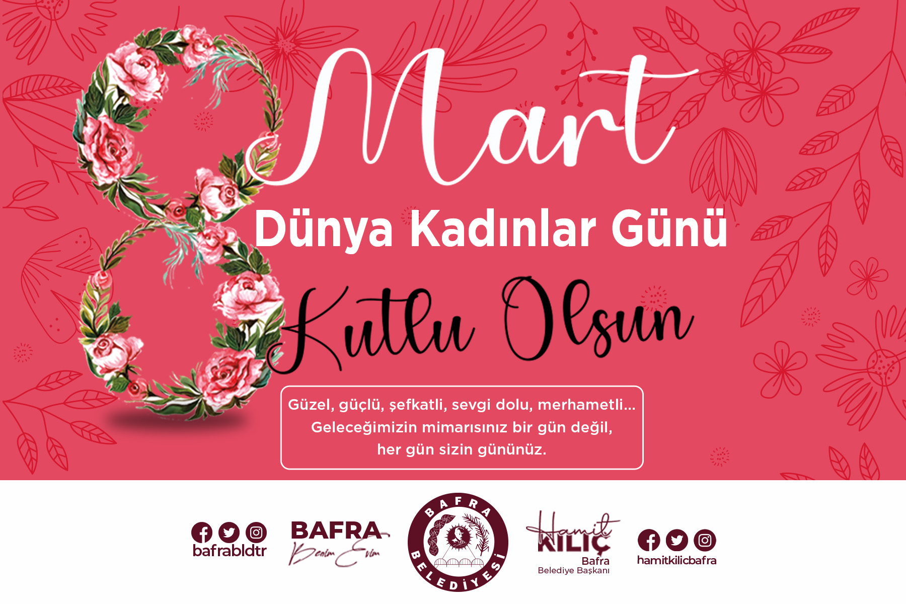 Bafra Belediye Başkanı Hamit Kılıç, 8 Mart Dünya Kadınlar Günü nedeniyle bir kutlama mesajı yayımladı.