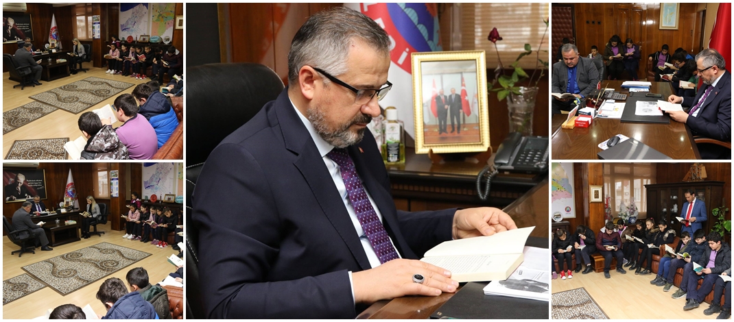 Bafra Belediye Başkanı Hamit Kılıç, “Samsun Okuma Vakti” Projesinin 1. Yılı farkındalık çalışmaları kapsamında makamında öğrenciler ile birlikte kitap okuyarak projeye desteğini sürdürdü.