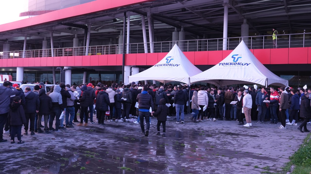 Tekkeköy Belediye Başkanı Hasan Togar stada gelen Samsunspor taraftarlarına maç öncesi iftar verdi. Süper Lig hedefine emin adımlarla ilerleyen Samsunspor’un Ramazan ayının başlamasıyla yapacağı ilk karşılaşma taraftarın yoğun ilgisiyle karşılaştı. Samsunspor’a desteğini her defasında yineleyen Tekkeköy Belediye Başkanı Hasan Togar, oruç tutan taraftarlar için iftar programı düzenledi. Samsunspor – Altınordu karşılaşması öncesi stad önünde hazırlıklarını tamamlayan Tekkeköy Belediyesi ekipleri binlerce taraftarı iftarlıklarla karşıladı. İftarlıklarını alan taraftarlar masa ve sandalyelerin kurulduğu alanda orucunu açtı. Taraftarlar yapılan hizmet için Başkan Togar’a teşekkür etti. Stada gelerek Samsunspor karşılaşmasını izleyen Tekkeköy Belediye Başkanı Hasan Togar, “Paylaşmanın dayanışmanın zamanı 11 ayın sultanı Ramazan ayımızda gururumuz Samsunspor’umuzu ve onun vefakar taraftarını yalnız bırakmak istemedik. Taraftarlarımız stada gelerek oruçlarını onlar için hazırladığımız iftarlıklarla açtılar. İnşallah Samsunspor’umuzun bu yürüyüşü şampiyonlukla sonuçlanacak ve Süper Lig gururunu da hep beraber yaşayacağız” dedi.