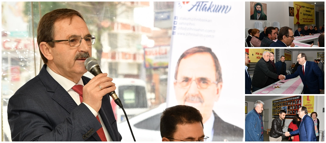 Öte yandan Başkan Zihni Şahin, dün akşam da Pir Sultan Abdal Derneği’ni ziyaret etti. Pir Sultan Abdal Kültür Derneği Samsun Şube Başkanı Cem Sultan Ermiş tarafından karşılanan Başkan Zihni Şahin, “Her kesimden insanımızı kucaklayan, sevgi ve muhabbet gösteren bir anlayıştan geliyoruz. Alevi kardeşlerimizin ortaya koydukları kültür, Anadolu sosyal hayatı ve kültürü içerisinde yeri tartışılmayan önemdedir. Allah korusun, Türkiye’ye bir şey olduğunda bizimle birlikte bütün mazlumlar, İslam dünyası, Türk dünyası ümitlerini de kaybedeceklerdir. Bizim her zaman bir ve beraber olma zorunluluğumuz vardır. İnşallah Allah milletimize ve devletimize zeval vermez ve birlikteliğimiz daim olur” diye konuştu.