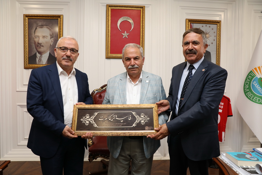 Ziyaretin sonunda Belediye Başkanları Birliği (BBB) Kurucu Başkanı Süleyman Kaldırım,İlkadım Belediye Başkanı Necattin Demirtaş’a Hüd süresini yazıldığı tabloyu 2019-2022 yılları Belediye Başkanları Albümünü hediye etti.