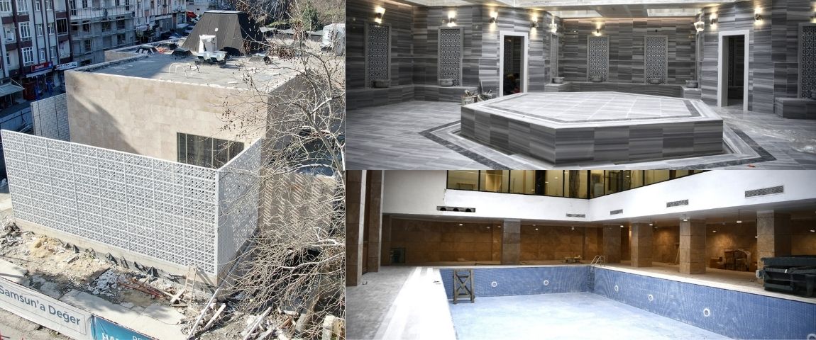 Samsun Büyükşehir Belediyesi tarafından İlkadım ilçesindeki eski belediye hamamı yeniden inşa ediliyor. Kendine has mimarisi ve tarzı olan, 1242 metrekare alan üzerine inşa edilen hamamın inşaat çalışmalarının yüzde 95’i tamamlandı.Samsun Büyükşehir Belediyesi Türk geleneğinin önemli unsurlarından hamamların yeniden eski albenisine kavuşması noktasında da önemli çalışmalar yürütüyor. Bu kapsamda İlkadım ilçesindeki Belediye Hamamı yeniden inşa ediliyor. Modern yapı ile Osmanlı mimarisini birleştirmeyi amaçlayan hamamın içerisinde kafeteryası, sauna odaları, dinlenme alanları, köpük odası, masaj salonları, 21 araçlık kapalı otoparkın yanı sıra klasik hamamlarda olmayan havuz da mevcut. Projenin inşaatının yüzde 95’lik kısmının tamamlandığı belirtildi.