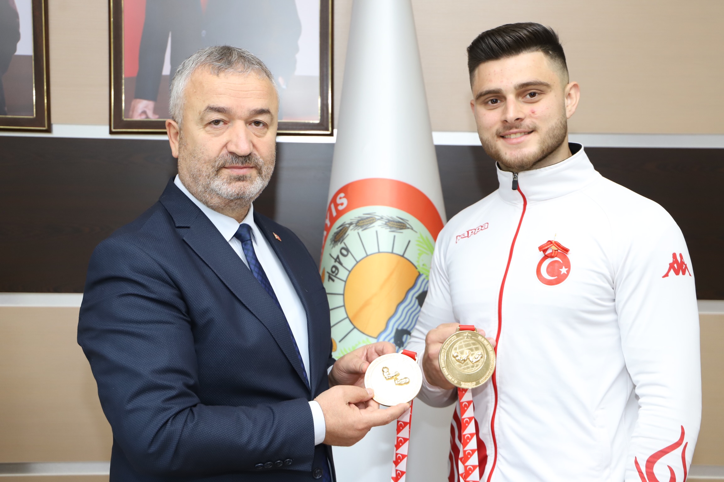 Gerçekleşen Dünya Bilek Güreşi Şampiyonasında dünya şampiyonu olan Burak Deniz, 19 Mayıs Belediye Başkanı Osman Topaloğlu’nu makamında ziyaret etti.