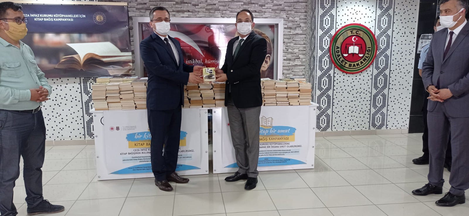 Adalet Bakanlığı tarafından “Bir Kitap, Bir Umut” sloganıyla başlatılan “Ceza İnfaz Kurumu Kütüphaneleri için Kitap Bağış Kampanyası” kapsamında Bafra Kaymakamlığı himayelerinde İlçemiz Okullarında toplanan yaklaşık 600 kitap, Kaymakam Cevdet Ertürkmen tarafından Cumhuriyet Başsavcısı Olcay Aksoy’a teslim edildi.