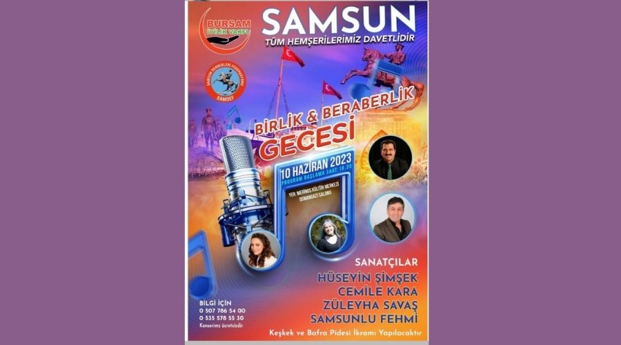 Bursa Samdef ve Bursam İyilik Vakfı,Bursada yaşayan Samsunluları ve Bursalılari buluşturup kucaklaştırmak için ortak bir program düzenliyorlar.