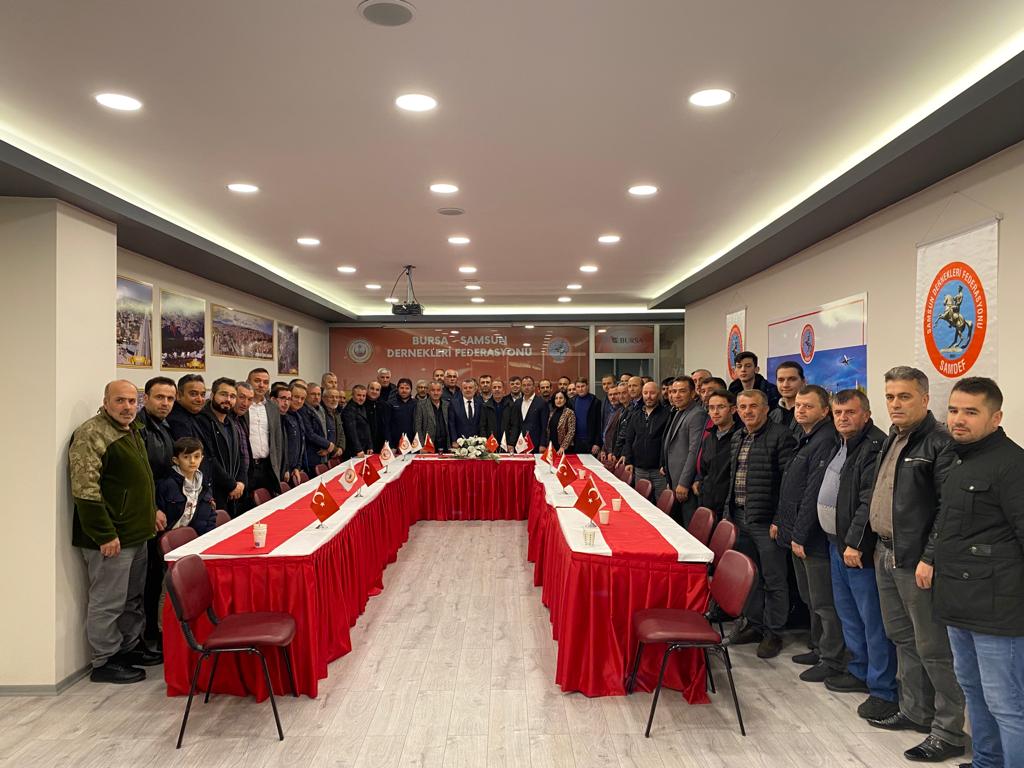 Bursa Samsunlular Dernek Başkanı,Bursa Samsun Dernekleri Federasyonu Başkan vekili Sayin Temel Erkol’un Samdef’te düzenlemiş olduğu toplantıda 28.dönem Bursa Ak Parti milletvekili Aday adayı Samsunlu sayın İrfan Akkaya,Samdef yonetim kurulu,Samdef’e baglı dernek başkanlari ve üyeleriyle bir araya geldi.
