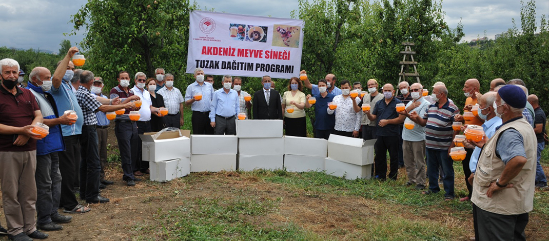Büyükşehir Belediyesi Tarımsal Hizmetler ve Muhtarlık İşleri Daire Başkanlığı tarafından üreticilere Akdeniz meyve sineği kitlesel yakalama tuzağı dağıtıldı. Daire Başkanı Mehmet Akif Özdemir, Tarım ve Orman İl Müdürü İbrahim Sağlam ve üreticilerin katıldığı törenle 100 çiftçiye 1880 adet meyve sineği tuzağı teslim edildi. İlkadım İlçesi Çatalarmut Mahallesi’ n de yapılan dağıtım töreninde konuşan Tarımsal Hizmetler ve Muhtarlık İşleri Daire Başkanı Mehmet Akif Özdemir, tuzakların yıllık 2 bin tonun üzerinde meyve üretimi yapan üreticilere dağıtıldığını söyledi.