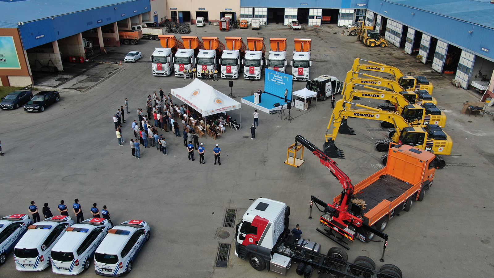 Samsun Büyükşehir Belediyesi, 7 kamyon, 4 ekskavatörü daha araç filosuna dahil etti. 4 yılda 509 yeni aracı hizmete alan Büyükşehir Belediyesi gücüne güç kattı. Büyükşehir Belediye Başkanı Mustafa Demir “Kiralama dönemini kapattık verimliliğimiz daha da arttı. Şu anda 34 tane tesis ve toplam bin 165 aracımızla bu güzel şehre hizmet üretiyoruz. Türkiye’nin araç envanteri açısından en güçlü belediyelerinden biriyiz.” dedi.Samsun Büyükşehir Belediyesi araç filosunu genişletmeyi sürdürüyor. Büyükşehir Belediyesi 2023 yılında 114, 4 yılda ise 509 yeni araç alarak araç sayısını bin 165 ‘e yükseltti. Yeni alınan araçlardan 4 ekskavatör ve 7 kamyon da bugün düzenlenen törenle hizmet vermeye başladı. Törene Samsun Büyükşehir Belediye Başkanı Mustafa Demir, Genel Sekreter İlhan Bayram, Genel Sekreter Yardımcıları Ahmet Bayır ve Şenol Yıldız, Büyükşehir Belediye Meclisi AK Parti Grup Başkan Vekili Recep Kemal Certel, Büyükşehir Belediye Meclisi AK Parti Grup Başkan Vekili Nihat Soğuk, daire başkanları ve personeller katıldı. Hizmete alınan araçların test sürüşünü ise Samsun Büyükşehir Belediye Başkanı Mustafa Demir gerçekleştirdi.‘TÜRKİYE’NİN EN GÜÇLÜ ARAÇ FİLOSUNA SAHİP BELEDİYESİYİZ’Toplam bin 165 araçla Türkiye’nin araç envanteri açısından en güçlü belediyelerinden birisi olduklarını ifade eden Büyükşehir Belediye Başkanı Mustafa Demir, “Yeni gücümüze güç kattık. Kiralama dönemini kapattık verimliliğimiz daha da arttı. 2020 öncesinde belediyenin hizmet için oluşturduğu tesis sayısı 17. 4.5 yılda biz ilave 17 tane daha tesis oluşturduk. Şu anda 34 tane tesis ile bu güzel şehre hizmet üretiyoruz.”diyerek şunları söyledi:‘BUNLARI BUGÜNKÜ BEDELLERLE YENİDEN SATIN ALSAK YAKLAŞIK’“Alt yapıda vatandaşa hizmet üreten tesisler bunlar. 2020 yılında 74 tane,2021’de 186 ilave, 2022’de 135, 2023’te de 114 araç ile toplam 509 aracı bünyemize kattık. Şu anda toplam bin 165 aracımızla Türkiye’nin araç envanteri açısından en güçlü belediyelerinden biriyiz. Bunları bugünkü bedellerle yeniden satın alsak yaklaşık 3 milyar lira. 4.5 yılda araç 3 milyar liralık araç ve iş makinesi satın aldık. Bu araçlara göz bebeğimiz gibi bakmak zorundayız. Bu araçları optimum düzeyde kullanırsak 30 yıl bu şehre bunlar hizmet eder.”‘MEYVELERİNİ GÖREN ŞEHRİNE YANSITAN BELEDİYEYİZ’Samsun’un belediyecilikte bölgenin merkezi olduğunu ve Türkiye’nin en önemli şehirlerinden biri olduğunu dile getiren Büyükşehir Belediye Başkanı Mustafa Demir, “4.5 yıl oldu. Türkiye’de herhalde en hassas davranan en büyük yatırımı yapan bunun da meyvelerini gören şehrine yansıtan belediyeyiz. AK Parti Genel Merkez Yerel Yönetimler Başkanı ve Samsun Milletvekilimiz Sayın Yusuf Ziya Yılmaz bey de 4 dönem Samsun’da başarılı bir belediyecilik yaptı. Biz ondan sizlerle birlikte bayrağı devraldık. 4.5 yıldır sizlerle birlikte hizmetlerimize devam ediyoruz.” diye konuştu.Köksal ÖNER
