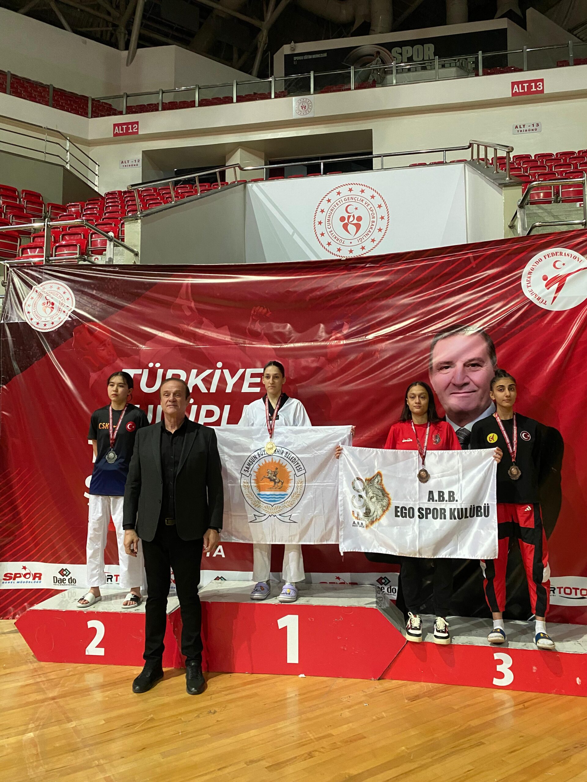 Samsun Büyükşehir Belediyesi Spor Kulübü Taekwondo Kız Takımı, 26-29 Aralık tarihleri arasında Konya’da düzenlenen Kulüpler Türkiye Taekwondo Şampiyonası’nda Türkiye üçüncüsü oldu.Karatay Spor ve Kongre Merkezi’nde gerçekleştirilen ve 65 ilden 570 kulübe bağlı yaklaşık 3 bin 800 sporcunun mücadele ettiği şampiyona da Samsun Büyükşehir Belediye Spor Kulübü Taekwondo Kız Takımı Türkiye üçüncüsü oldu.SPORCULARIN BÜYÜK BAŞARISISamsun Büyükşehir Belediye Spor Kulübü Taekwondo kız takımında Tuvanna Nazlı Kesgin 46 kg’da Türkiye şampiyonu, Senanur Çelik 53 kg’da Türkiye şampiyonu ve Elif Sudem Dülger 57 kg’da Türkiye üçüncüsü olmayı başardı. Erkeklerde ise Alihan Kuru 54 kg’da Türkiye üçüncüsü olarak bronz madalya kazandı.Köksal ÖNER